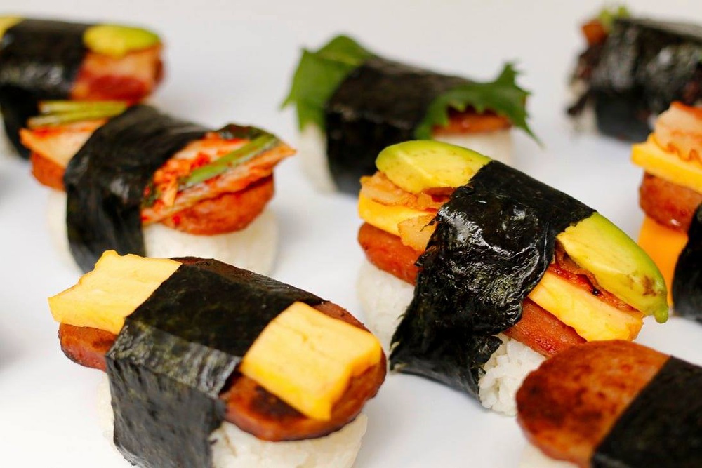 Plum Cucumber Spam Musubi, Avocado Bacon Egg Spam Musubi, Eel Egg Spam Musubi, Takuan Pickles Spam Musubi, and other rice balls that the combination of Japanese and Hawaiian culinary traditions serving at all of our locations on every single day.